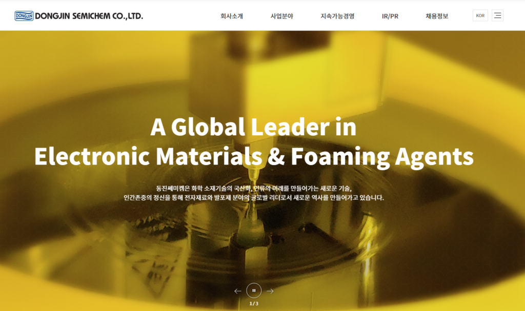 반도체 분야 외에도 동진쎄미켐은 OLED 및 LCD 디스플레이 제조 공정에 사용되는 감광재와 관련 소재를 생산하고 있습니다.
