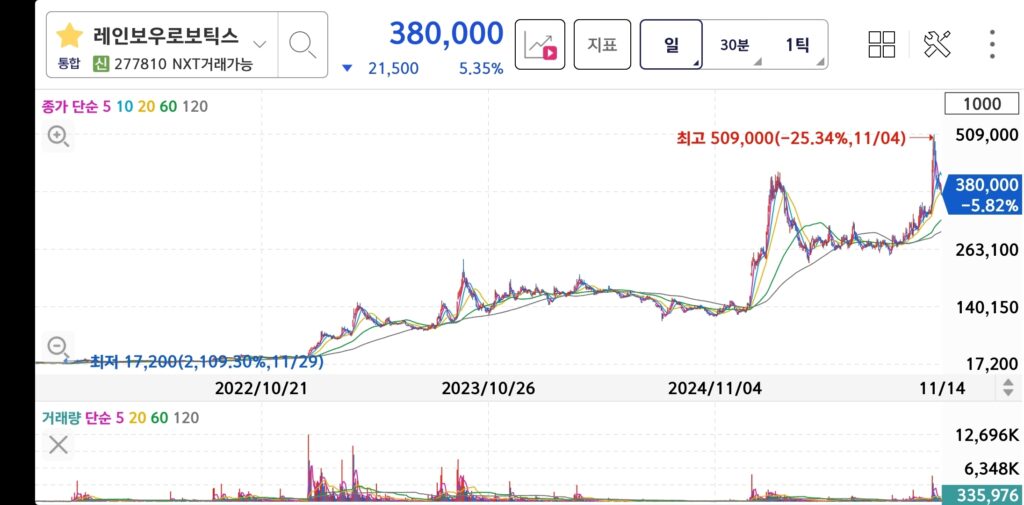 이런 흐름 속에서 레인보우로보틱스는 국내 대표 로봇 플레이어로 주가 관심이 꾸준히 이어질 수밖에 없어요.