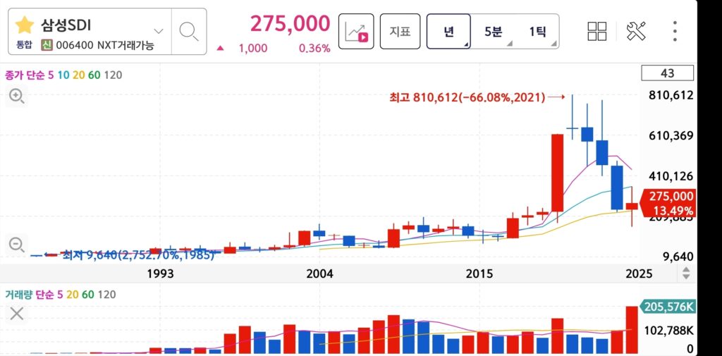 공부하면서 느낀 건, 삼성SDI가 좋은 회사인 건 맞는 것 같은데, 투자 타이밍을 판단하는 건 어려운 것 같다는 거예요.