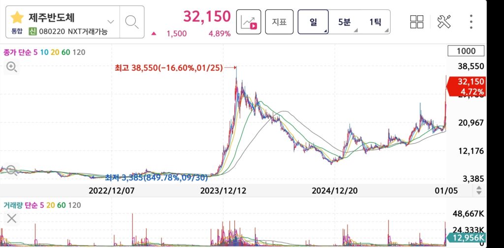 반도체주 전반이 좋긴 했는데, 제주반도체는 특히 더 많이 올랐어요.