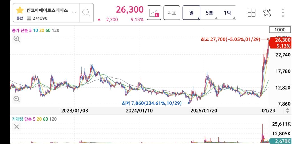 요즘 우주항공 테마가 뜨거운 이유는 명확하다. 일론 머스크의 스페이스X, 제프 베조스의 블루오리진, 그리고 트럼프 행정부의 우주산업 지원 정책이 맞물리면서 전 세계적으로 민간 우주산업 붐이 일고 있다. 그런데 이런 흐름 속에서 국내에 조용히 숨어 있는 회사가 하나 있다. 바로 켄코아에어로스페이스(274090)다.