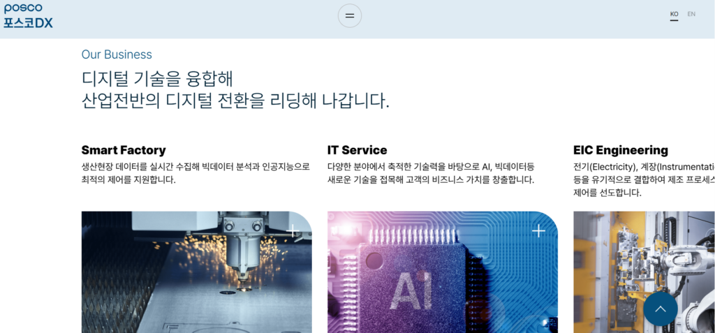그런데 막상 “포스코DX가 뭐 하는 회사야?”라고 물어보면 대답이 애매하다. 포스코 계열사니까 철강 관련 IT나 하겠거니, 정도로 생각하기 쉽다. 하지만 들여다보면 이야기가 다르다. 스마트팩토리, 물류자동화, 생성형 AI 플랫폼, 그리고 최근엔 휴머노이드 로봇까지. 포스코DX는 지금 ‘디지털 전환의 종합 솔루션 회사’로 탈바꿈하고 있다.