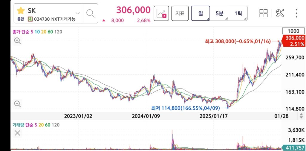 넷째, 배당을 챙기며 기다려라. SK㈜는 배당을 꾸준히 주는 편이다. 배당수익률은 2~3% 수준으로, 지주사 치고는 괜찮다. 주가 상승을 기대하기보다는, 배당을 받으며 장기 보유하는 전략이 현실적이다.
