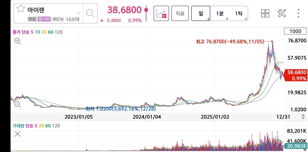 - IREN(아이렌): 300% 상승